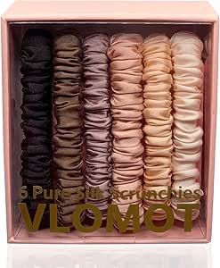 The VLOMOT Silk Hair Scrunchies set is a great choice for anyone looking to protect their hair while adding a touch of elegance to their look. Made from 100% pure mulberry silk, these scrunchies are gentle on your hair and come in six beautiful colors. They prevent hair breakage and thinning, making them a practical and stylish hair care product. Keep your hair in optimal form with these durable and soft scrunchies.